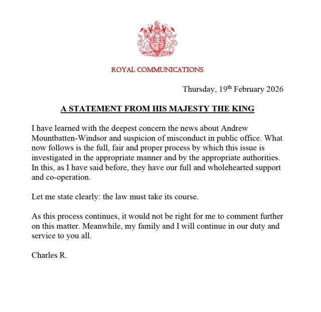 安德鲁去年10月被英国国王查尔斯三世剥夺尊号、头衔和荣誉,并于今年2月搬离居住逾20年的王室住所,但目前仍列王位继承顺位第8位。2月19日,安德鲁因涉嫌“公职人员不当行为”被警方逮捕。他在大约11小时后获释,但仍在被调查中。查尔斯三世当天发表声明说,英国王室将充分且坚定支持和配合警方调查。