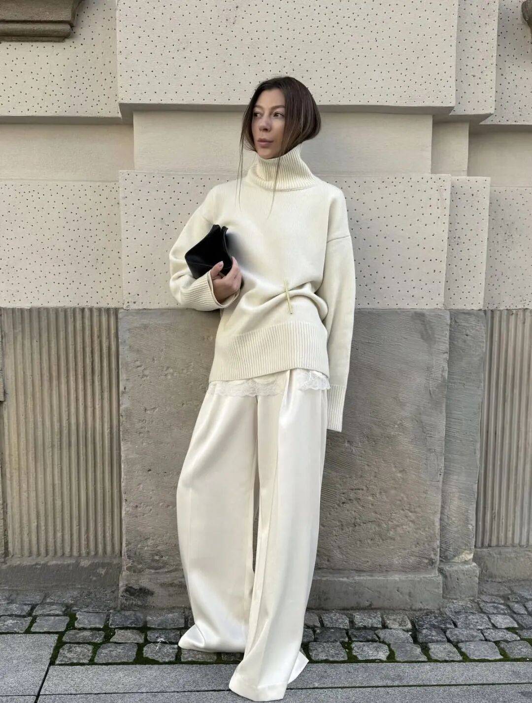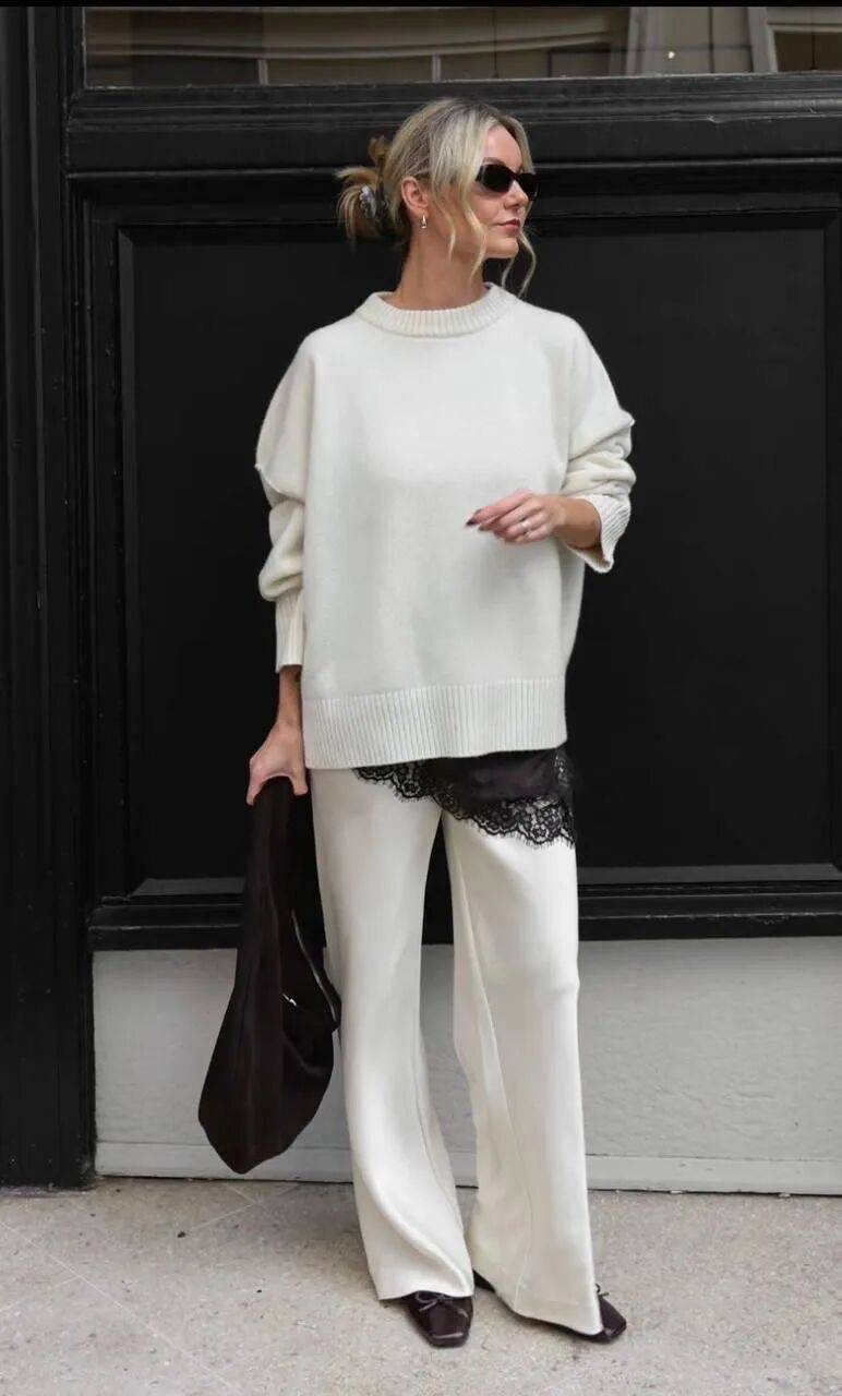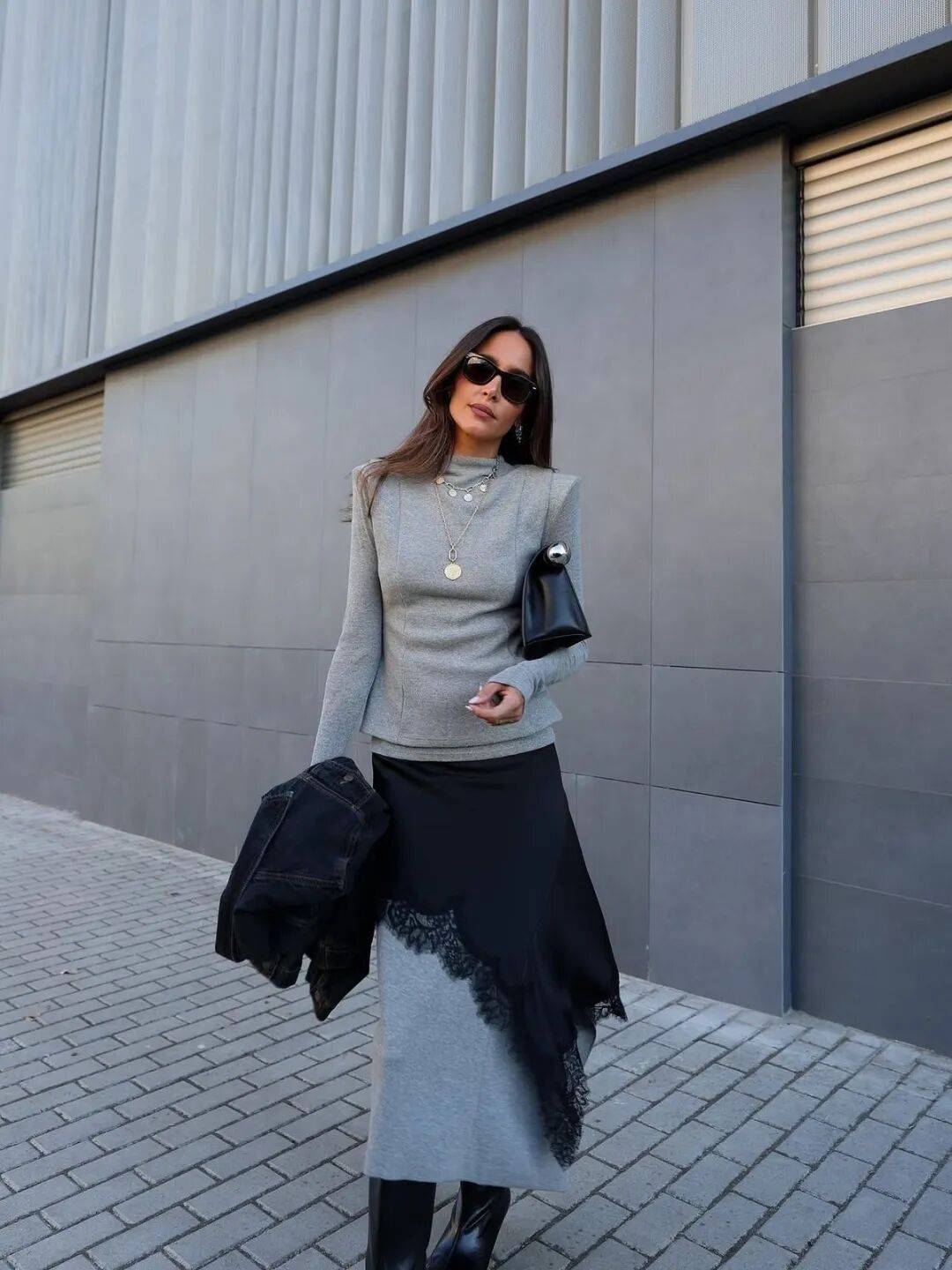 想要穿出高级感,不妨试试同色系法则,让蕾丝与针织在同一个色系里,质感便在不言中展露。