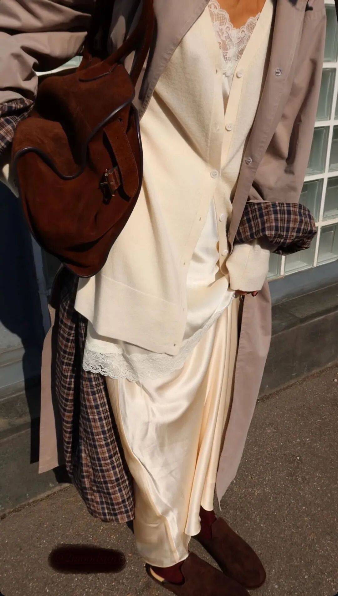 这组搭配的美妙之处在于它的兼容并蓄,无论是通勤、约会还是下午茶,都能轻松胜任。