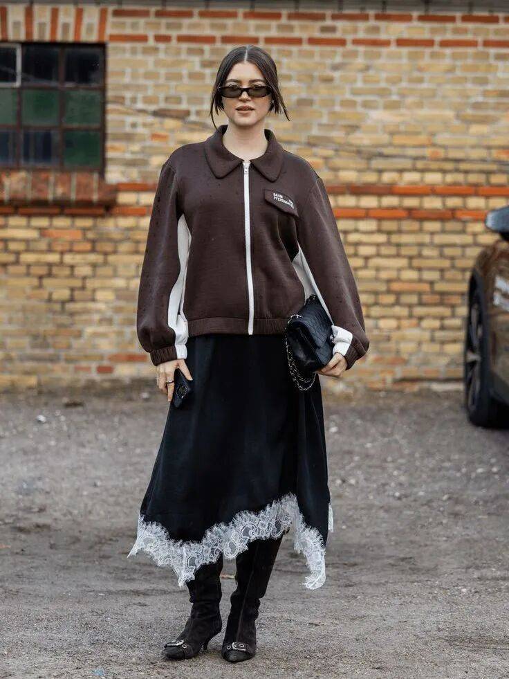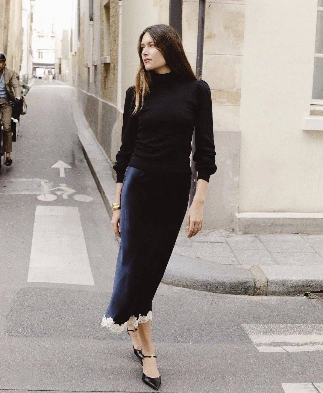 若是追求更丰富的视觉层次,用温柔的米白针织撞上一抹深邃的藏青蕾丝,或是反过来搭配,撞色也极具巧思。