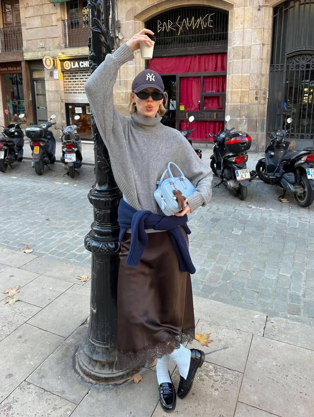 如果说有什么搭配能同时承载生活的踏实与远方的诗意,那一定是“针织衫+蕾丝半裙”。