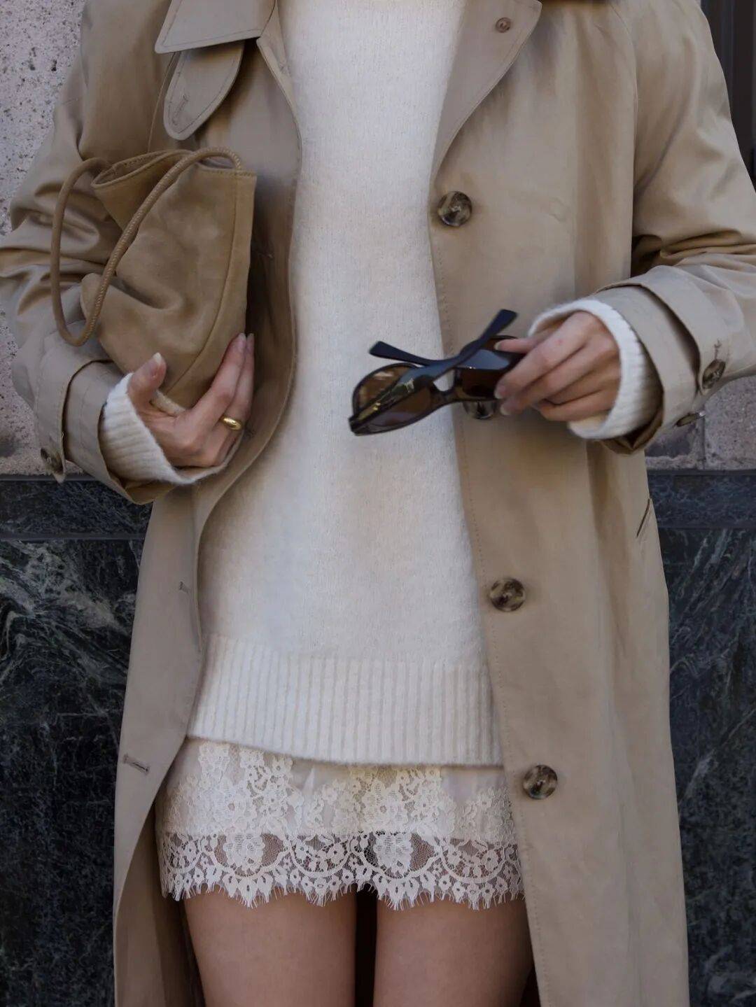而针织带来踏实与可靠,蕾丝则替我们保留了一点不必言说的幻想。两种质地叠在一起,像极了这个季节该有的样子: