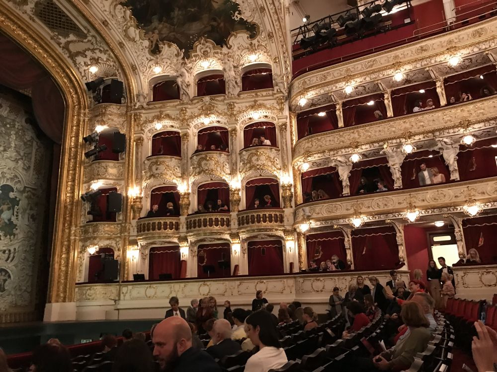 疫情期间在电视上看过不少芭蕾,最难忘的还是俄罗斯芭蕾舞团的表演。现在难以前往俄罗斯,便先在布拉格体验一场。捷克与俄罗斯同属东欧,表演风格应当相近吧。更何况票价实在亲民,第八排中间的位置,在波士顿连最后一排都买不到。