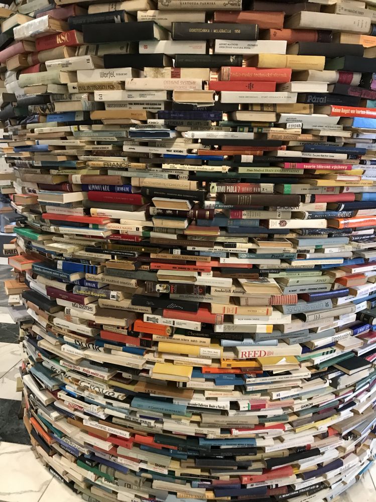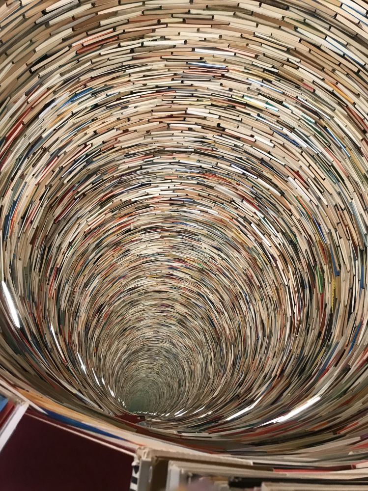 在布拉格的市立图书馆里,我们又见到了一件独特的装置艺术。它由8000多本书堆叠而成,利用镜面反射营造出无限深邃的视觉效果,犹如一个由书构成的“知识隧道”。