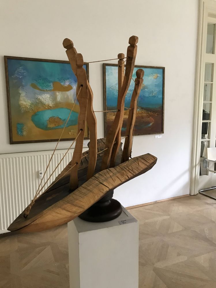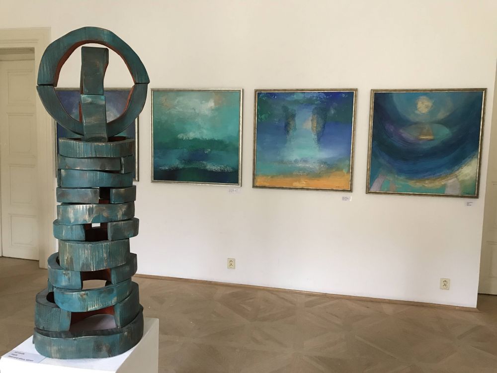 在维巴花园漫步时,我们还偶遇了一个小型的艺术展。我尤其喜欢其中的一个以蓝色和绿色为基调的绘画系列,说不清是蓝里透着绿,还是绿里泛着蓝。近看是笔触,远看便成了风景。