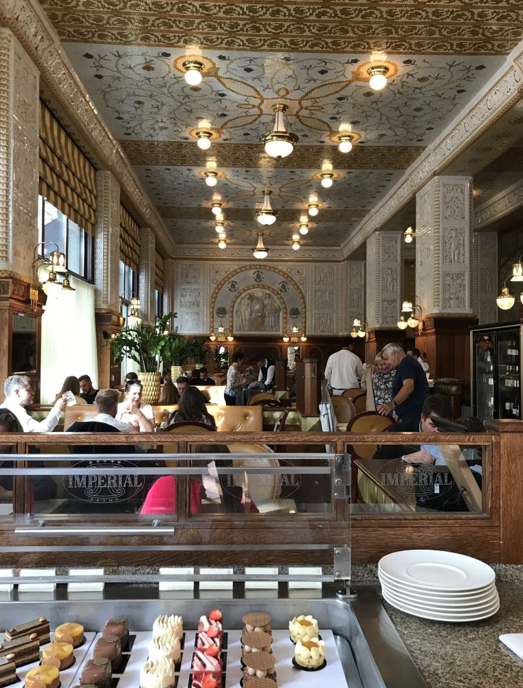 先从帝国咖啡馆说起,这里常被列入“世界最美咖啡馆”之一。起初我们只是想进去喝杯咖啡、小憩片刻,谁知一踏入便被它的氛围吸引。马赛克瓷砖、金色装饰、穿着白衬衣黑马夹的服务员,处处透着旧时代的优雅。我们决定索性留下来,把小憩变成了一顿午餐。