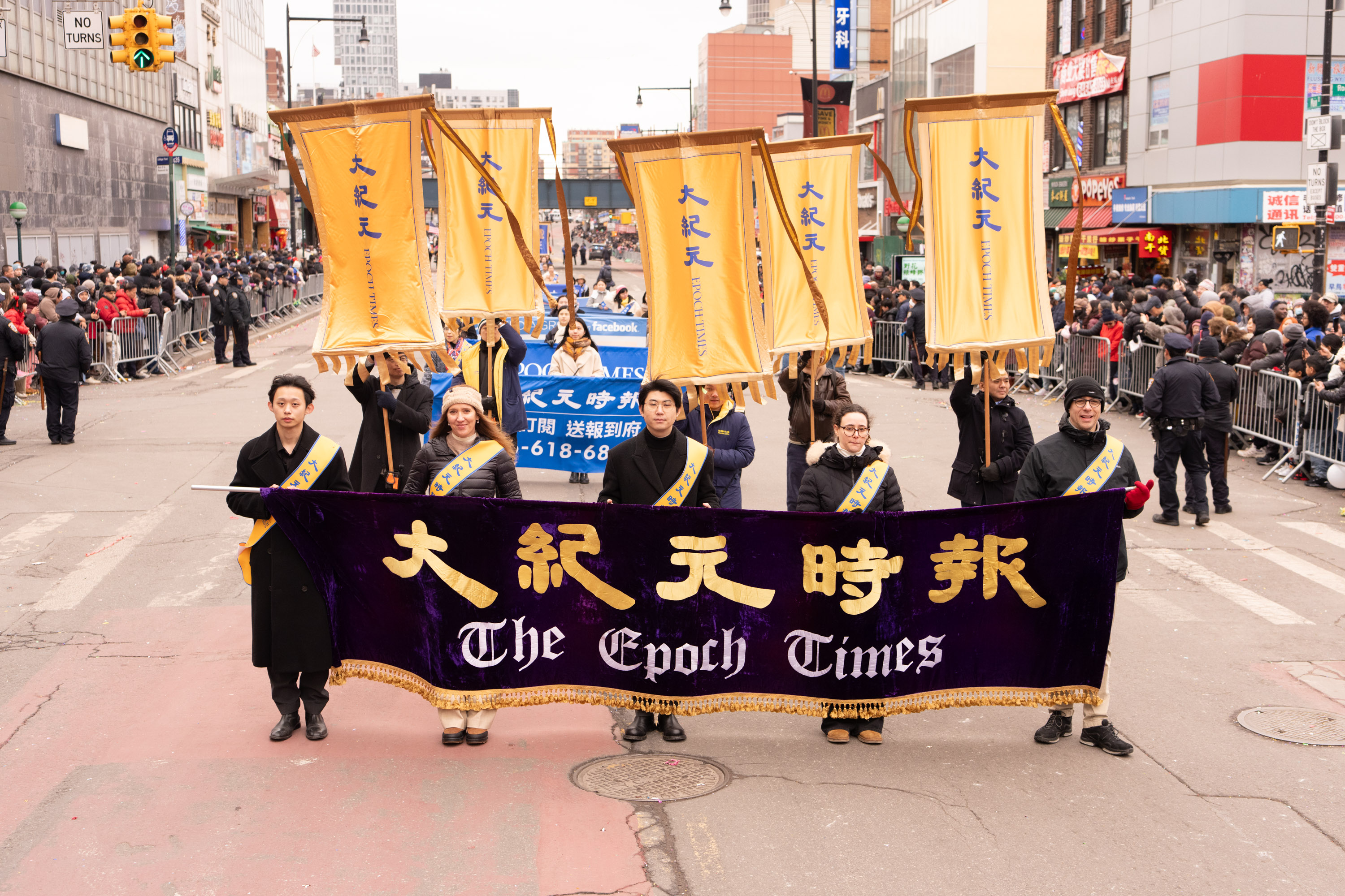 2月21日丙午马年大年初五,大纪元时报、新唐人电视台参加了纽约市最大华人聚居地——法拉盛一年一度的中国新年大游行活动。(戴兵/大纪元)