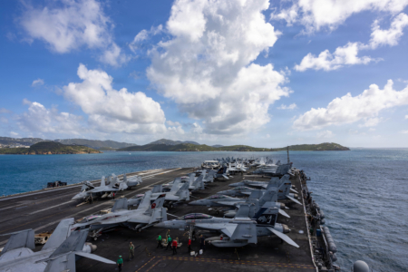“杰拉尔德‧R‧福特号”(USS Gerald R. Ford,CVN-78)已从加勒比海调往中东,将与“林肯号”会合。此次部署正值美国总统川普加大对伊朗施压,敦促其就核武器达成协议之际。川普警告,如果未来几周谈判未能取得成果,将造成“非常严重的”后果。