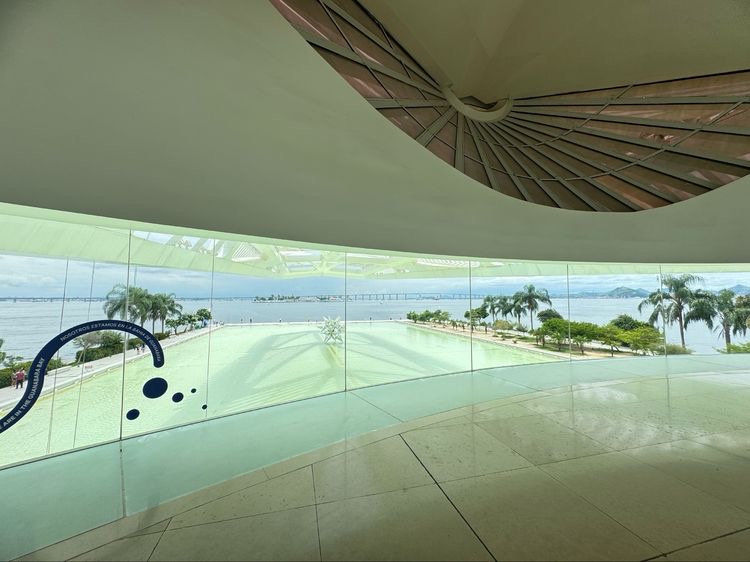 从博物馆后部的玻璃厅,可一览瓜纳巴拉湾(Guanabara Bay) 和里约-尼泰罗伊大桥的远景。