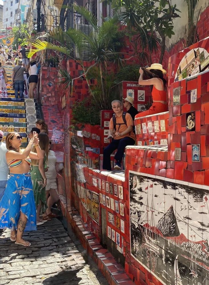 这道热门风景,是智利画家乔治·塞勒隆的作品。他靠卖画为生,周游了50多个国家后,被里约吸引,最后就定居在了这条街上。