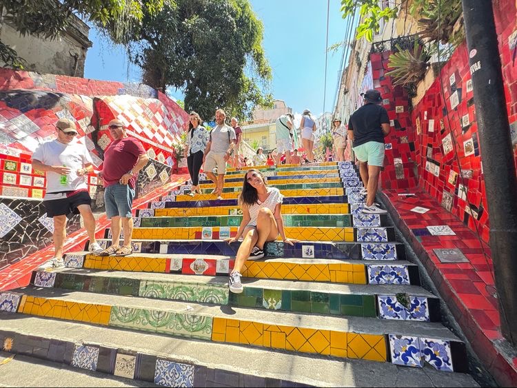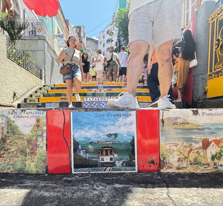 彩色台阶坐落在若阿金·席尔瓦街到马丁街之间的上坡街道上。据说共有200多级,使用了来自世界60多个国家的2000多块瓷砖。