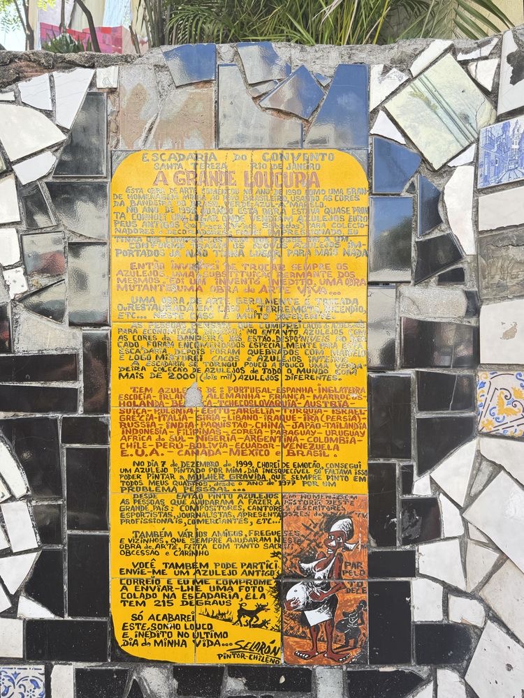 从1990年起,塞勒隆开始用他收集的废弃瓷砖美化家门口的阶梯。他主要选择蓝、绿和黄色的瓷砖 —— 巴西国旗的颜色,以这种方式"向巴西人民致敬"。