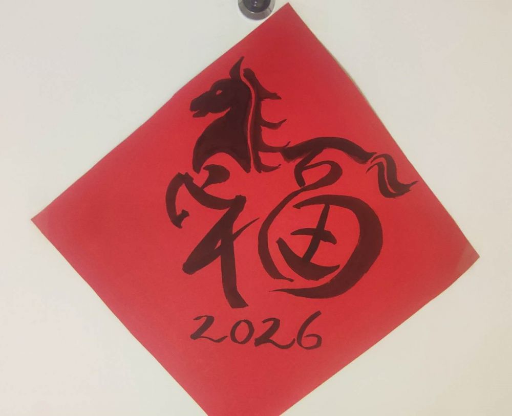 去年的春联是蛇年的,福字也是蛇形的,娃娃写得很认真。今年换成了马年春联,还有一个“马”字造型的福。红纸一贴上去,屋子里立刻就有了年味儿。窗外是冬天的灰色,屋里却是暖的、亮的。