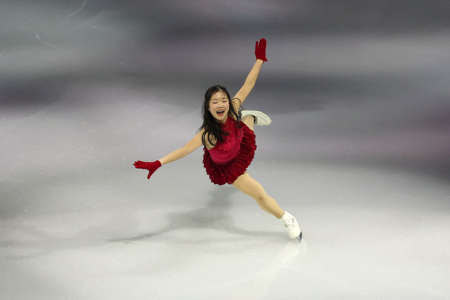2026年2月21日,日本选手中井亚美在2026年米兰-科尔蒂纳冬季奥运花式滑冰表演赛上表演。(Jamie Squire/Getty Images)