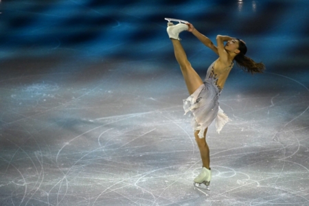 2026年2月21日,日本选手坂本花织在2026年米兰-科尔蒂纳冬季奥运花式滑冰表演赛上表演。(Gabriel Bouys/AFP)