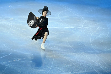 2026年2月21日,韩国选手李海仁在2026年米兰-科尔蒂纳冬季奥运花式滑冰表演赛上表演。(Gabriel Bouys/AFP via Getty Images)
