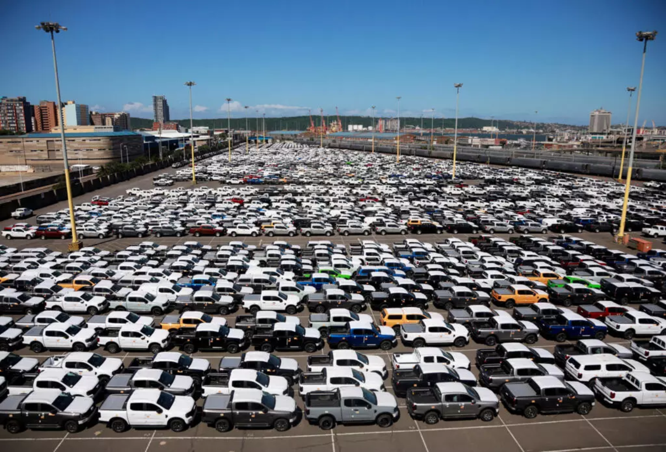 Des véhicules stockés sur le terminal de Durban en Afrique du Sud, le 10 avril 2025. ? Rogan Ward / REUTERS