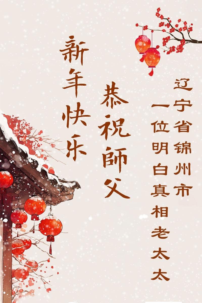 辽宁省锦州黑山县一法轮功学员的老伴恭祝李大师新年快乐!
