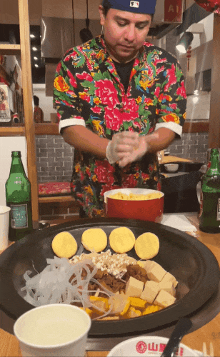 在美国洛杉矶,不仅能吃到正宗铁锅炖,还有穿着东北特色大花衣服的外国人给你贴饼子。
