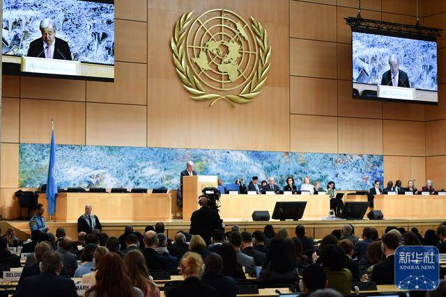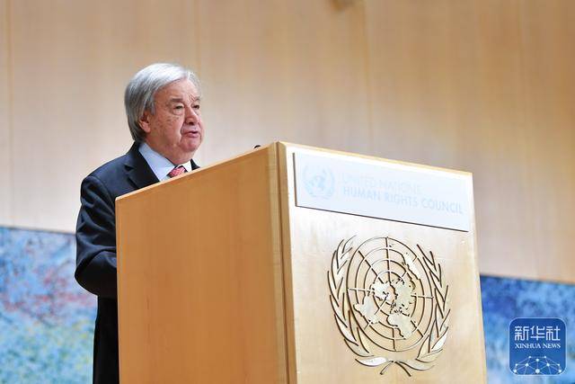 ↑2月23日,在瑞士日内瓦万国宫,联合国秘书长古特雷斯在联合国人权理事会第61届会议上讲话。