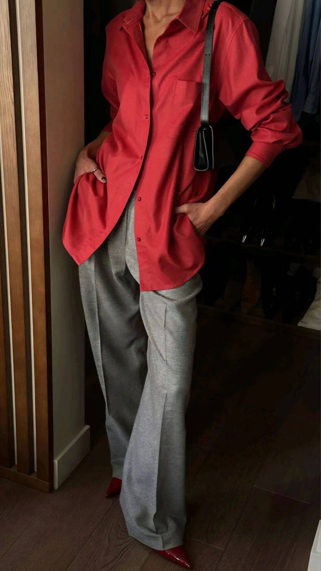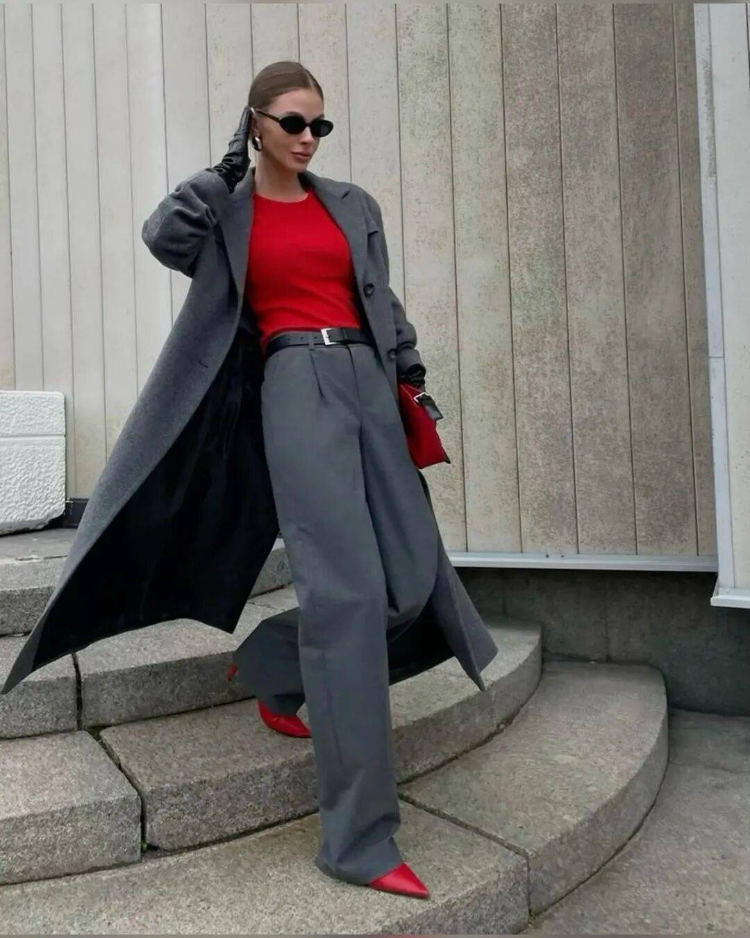 无论是灰主红辅,还是红主灰辅,关键在于比例的把控。三七或二八的分配往往最舒服,主色调奠定整体氛围,辅助色则在关键位置点睛,让整套穿搭既有重点,又有层次。