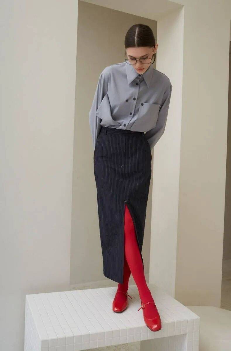 让灰色当主角,是职场中最安全却绝不平庸的选择。只在一处细节留下红色伏笔,灰色将专业冷静的气质铺陈开来,红色则像平静湖面上投下的一颗石子,激起恰到好处的涟漪。