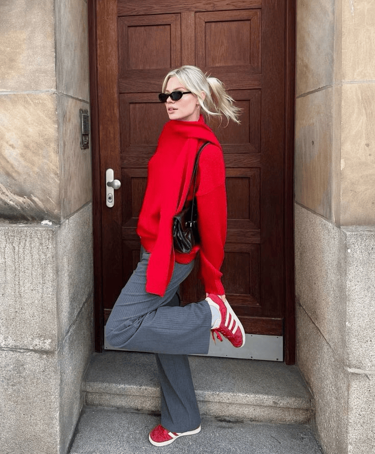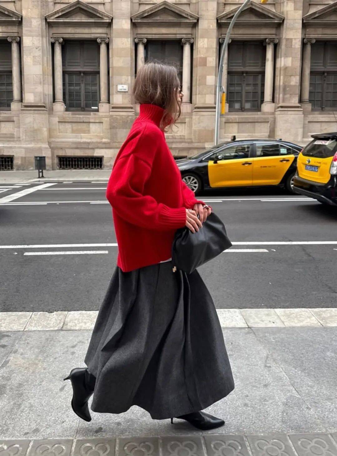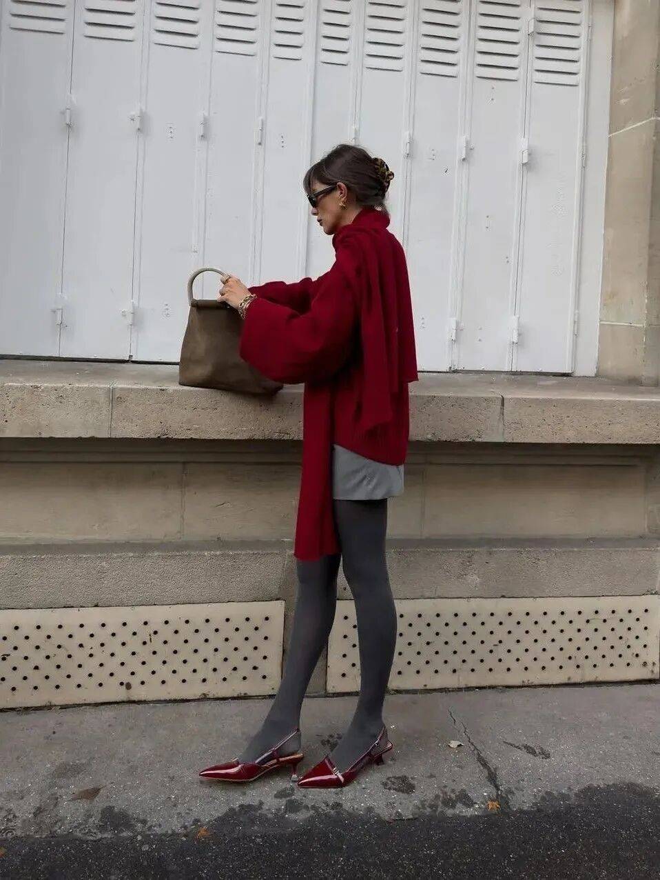 这样的红色配灰色,不沉重,不刻意,一切都刚刚好,像这个季节本身一样令人期待。