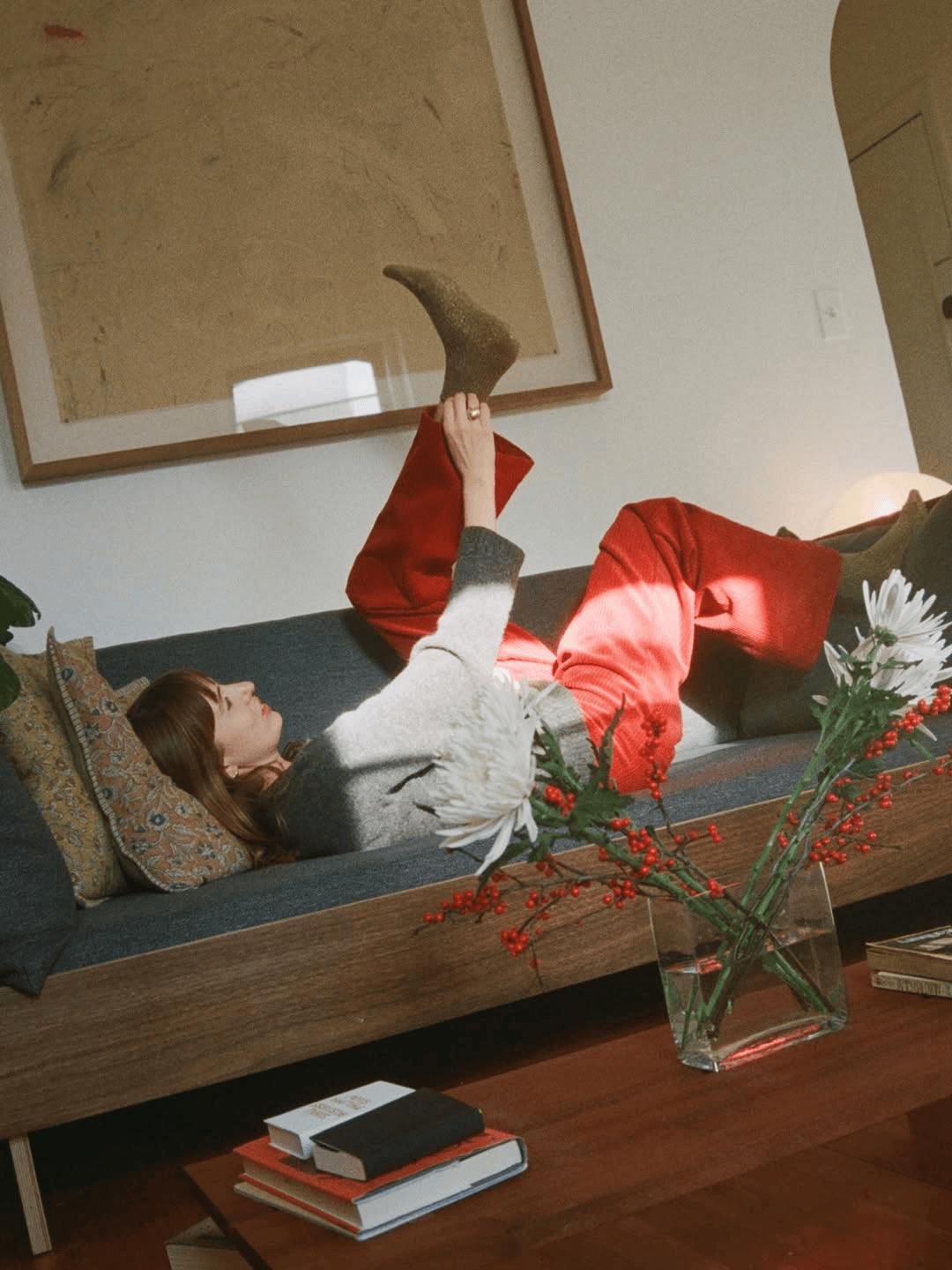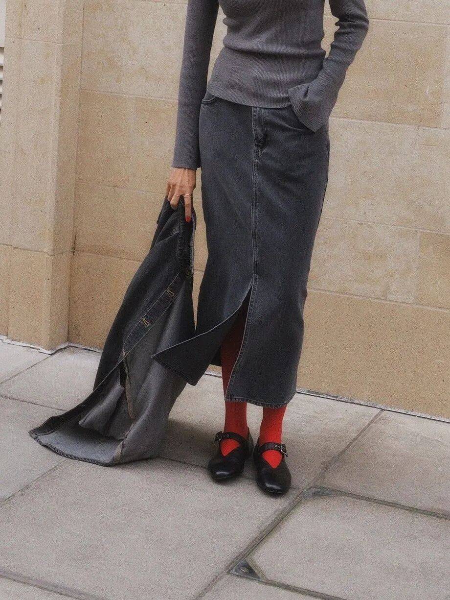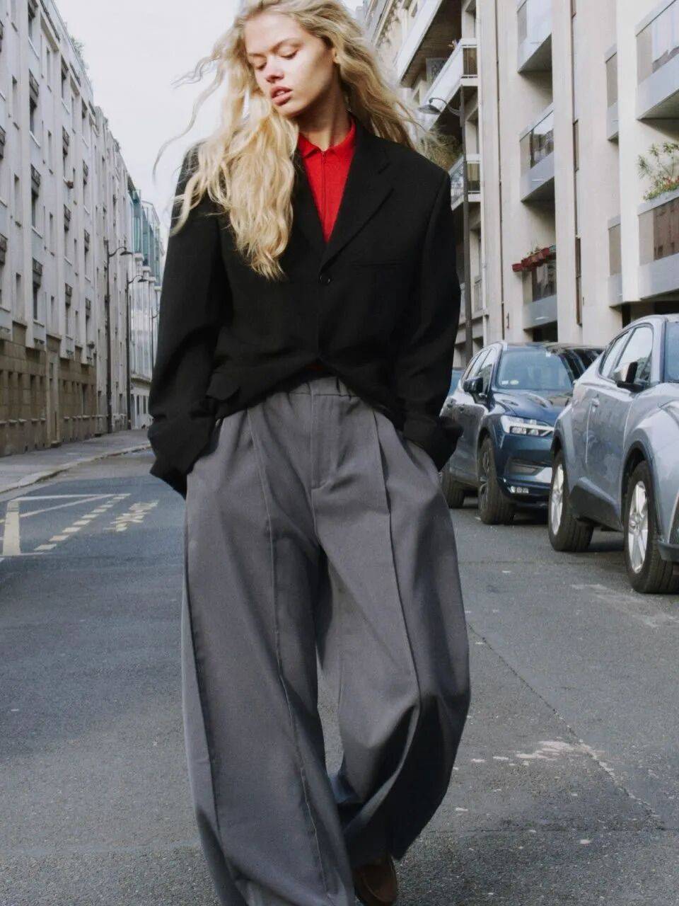 这样的红色配灰色,不沉重,不刻意,一切都刚刚好,像这个季节本身一样令人期待。