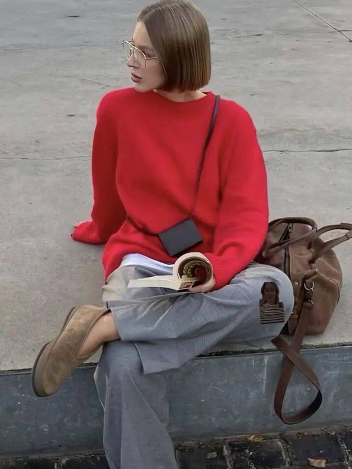 若让红色成为主调,则是另一种大胆的表达。选择砖红或朱红的外套,让红色占据视觉中心,整个人仿佛带着节日的热烈走入日常。