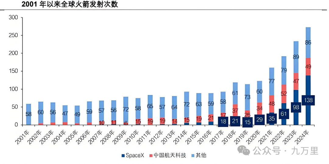 美国的领先地位依然稳固。自 1984 年《商业航天发射法案》出台以来,美国持续通过顶层设计与政策引导,鼓励私营企业进入航天领域。在政策引导下,SpaceX、蓝色起源等私营企业迅速崛起。SpaceX 的 “星链” 系统已发射卫星超过 9000 颗,为全球 100 多个国家和地区的超过 500 万名用户提供通信服务。