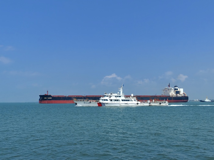 海事部门护航“河北矿业”轮安全靠泊湛江港。叶建大 摄