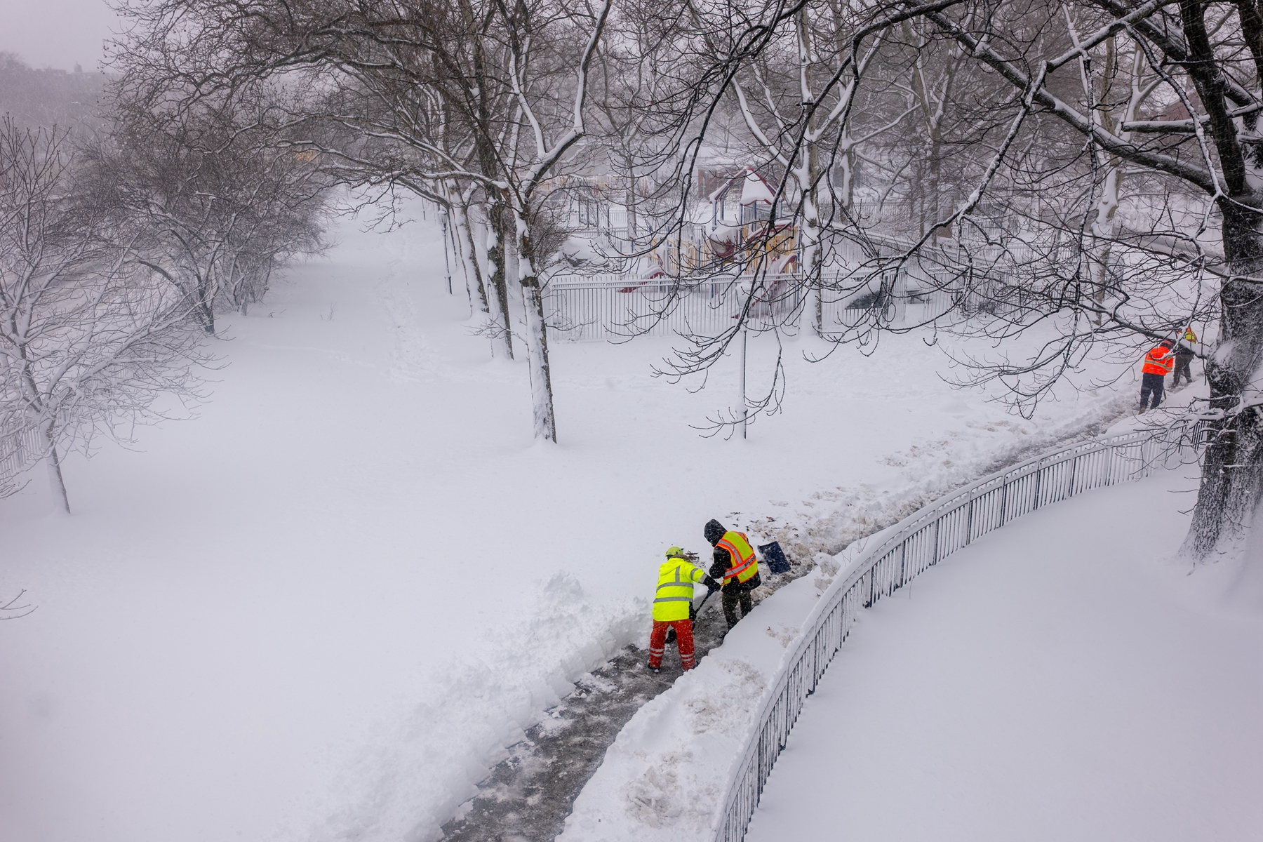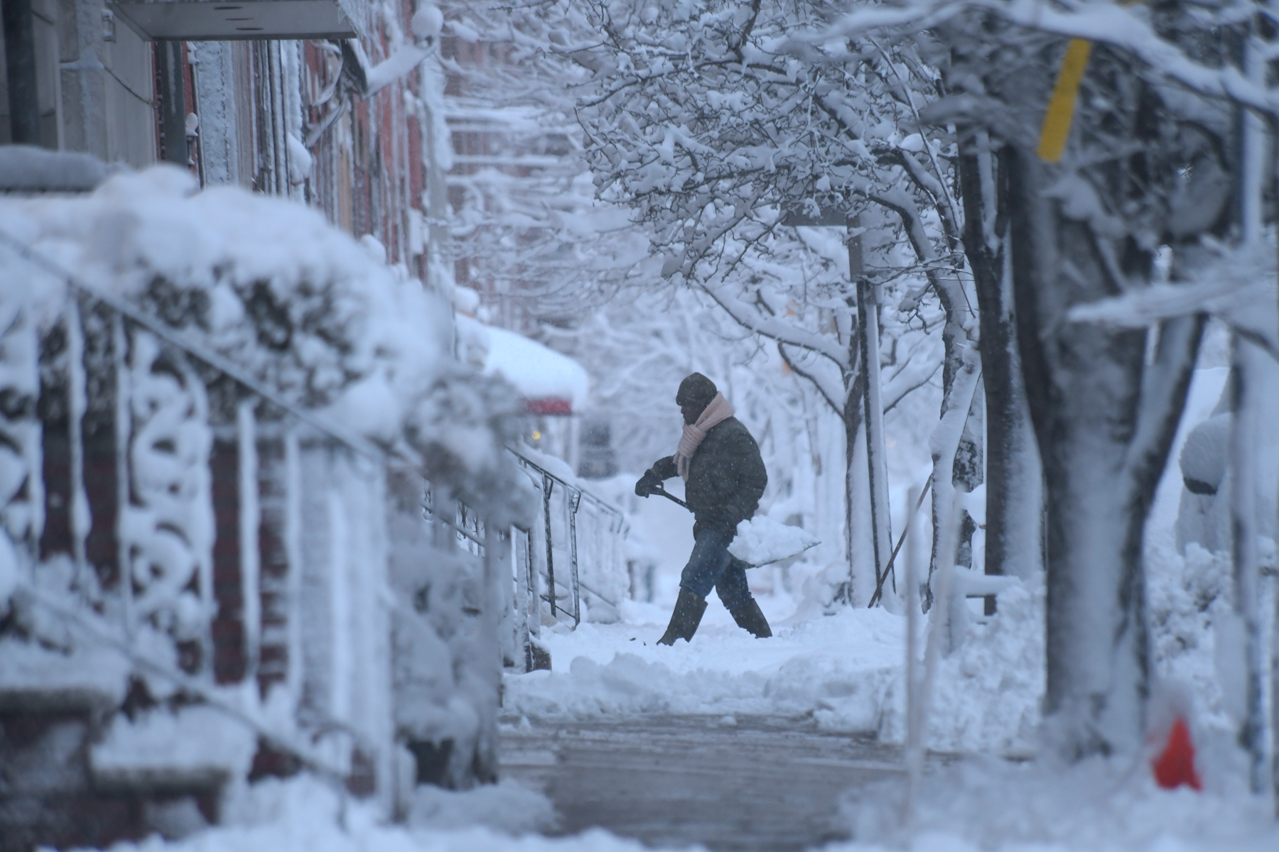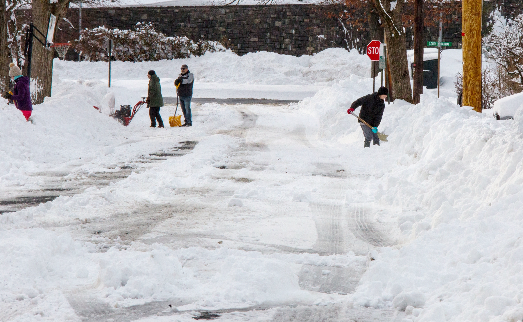 2026年2月23日,纽约州奈阿克(Nyack)遭暴风雪袭击,人们清除街道上的积雪。(Kena Betancur/Getty Images)