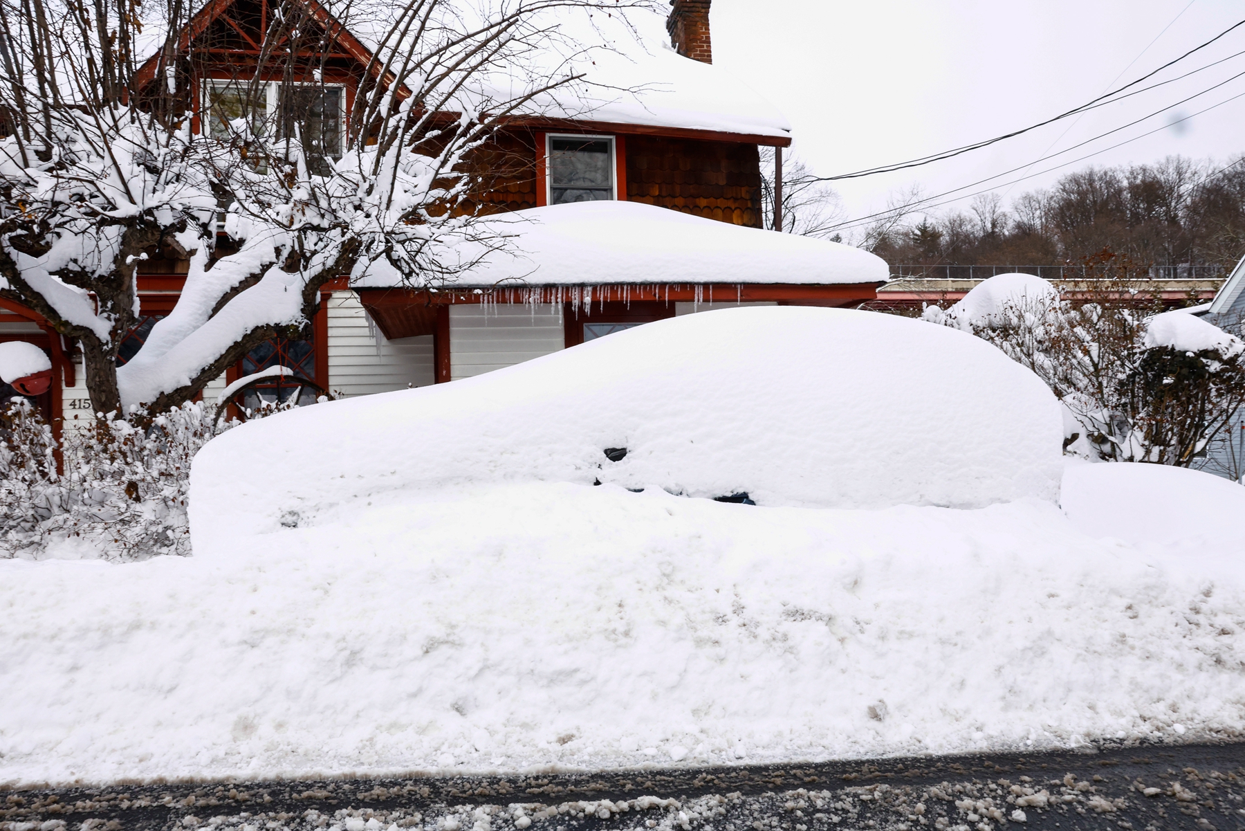 2026年2月23日,纽约州皮埃蒙特(Piermont)遭暴风雪袭击,一辆汽车被厚厚的积雪掩埋。(Kena Betancur/Getty Images)