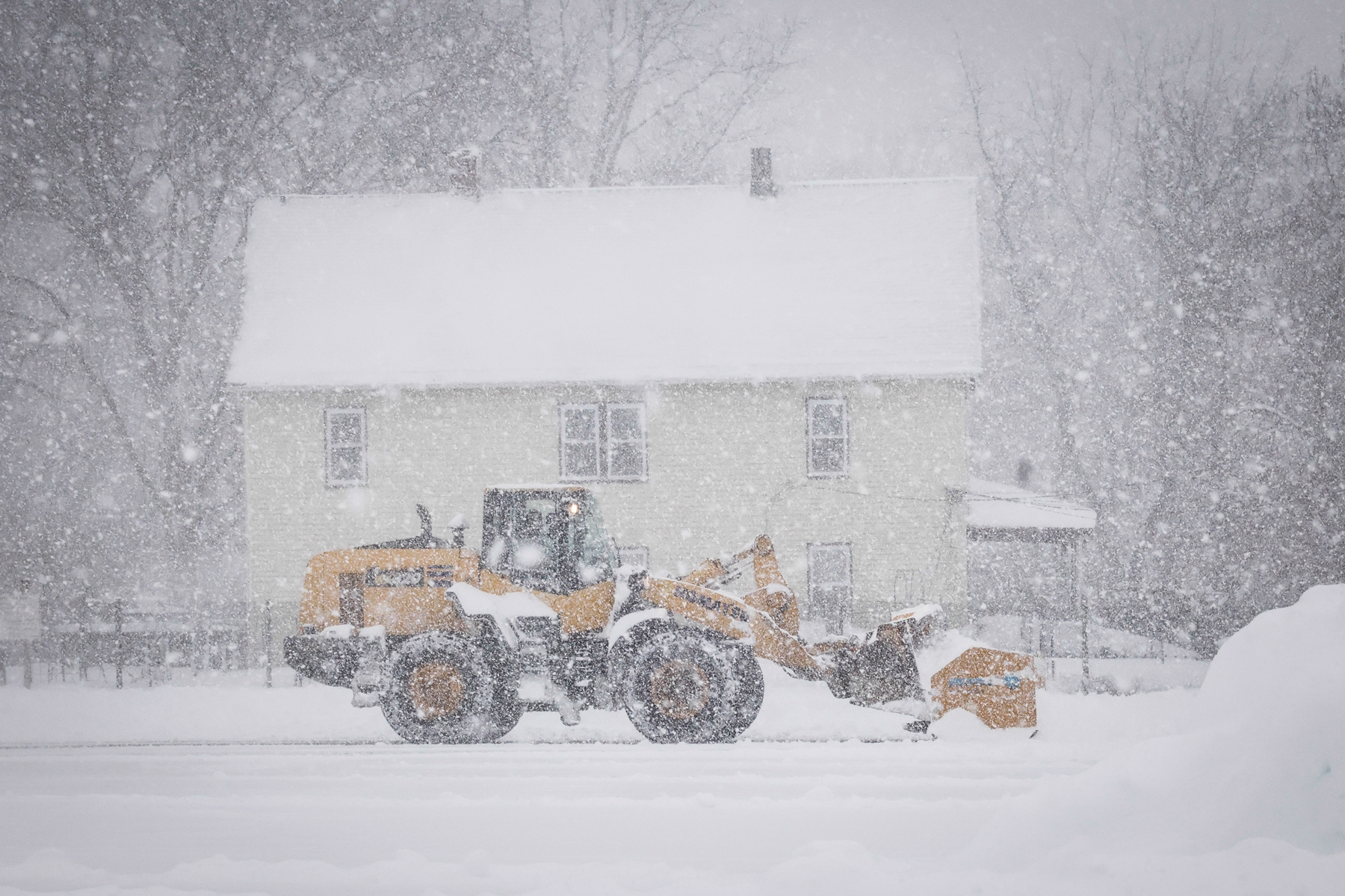 2026年2月23日,新泽西州诺伍德(Norwood)遭暴风雪袭击,一台挖掘机清理车道上的积雪。(Kena Betancur/Getty Images)宾夕法尼亚州