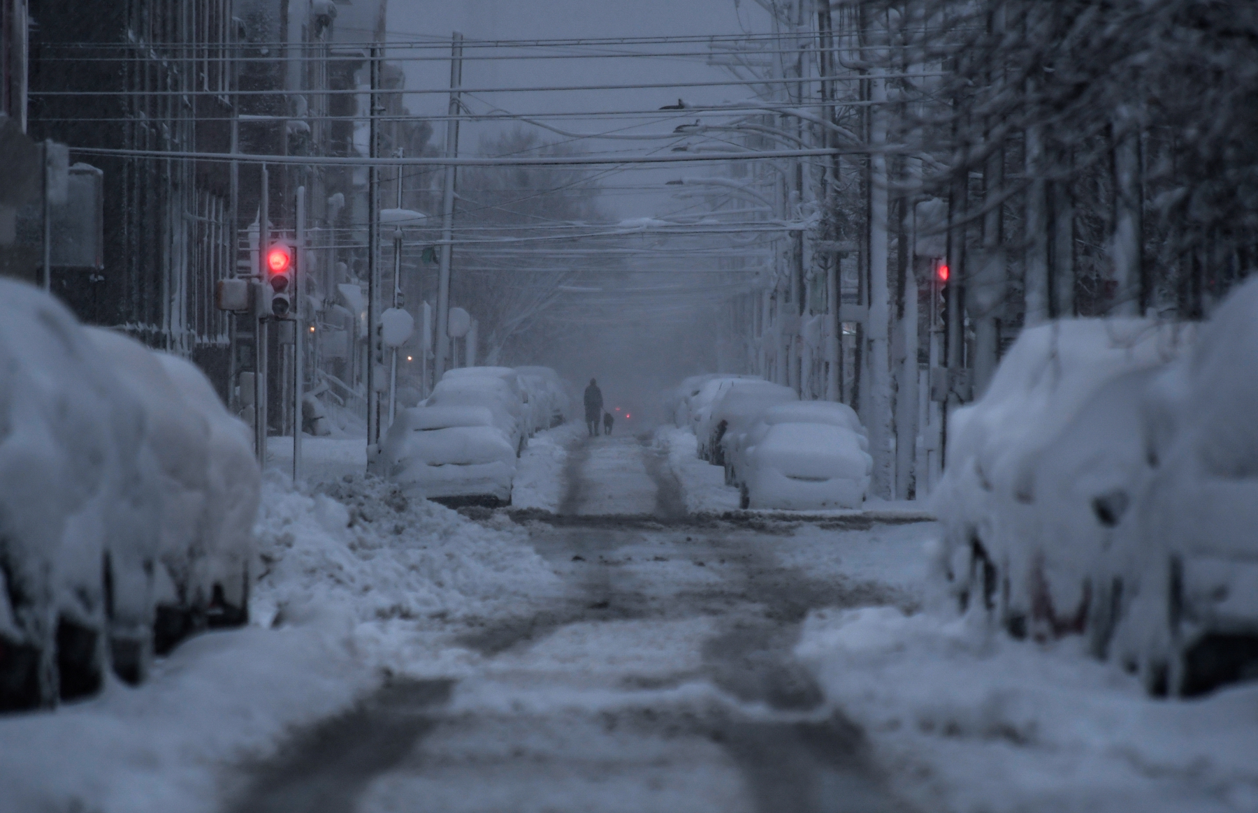 2026年2月23日,宾夕法尼亚州费城遭暴风雪袭击,街道和车辆被厚厚的积雪覆盖。(Matthew Hatcher/Getty Images)
