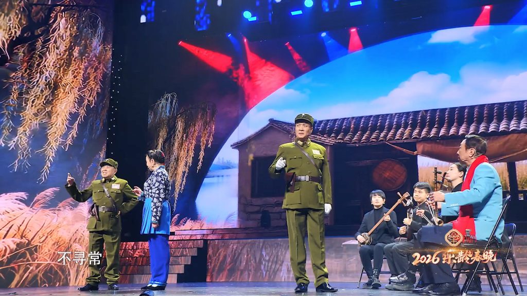晚会节目编排并不追求炫目的舞美,而更强调情感与记忆的力量。开场《马字令》《套马杆》热闹喜庆,老艺术家与民间达人同台,既有专业功底,也有生活气息;情景朗诵《梦圆万家》温情绵长;《智斗》《天上掉下个林妹妹》《夫妻双双把家还》等经典唱段唤起我们这一代人的共同记忆。
