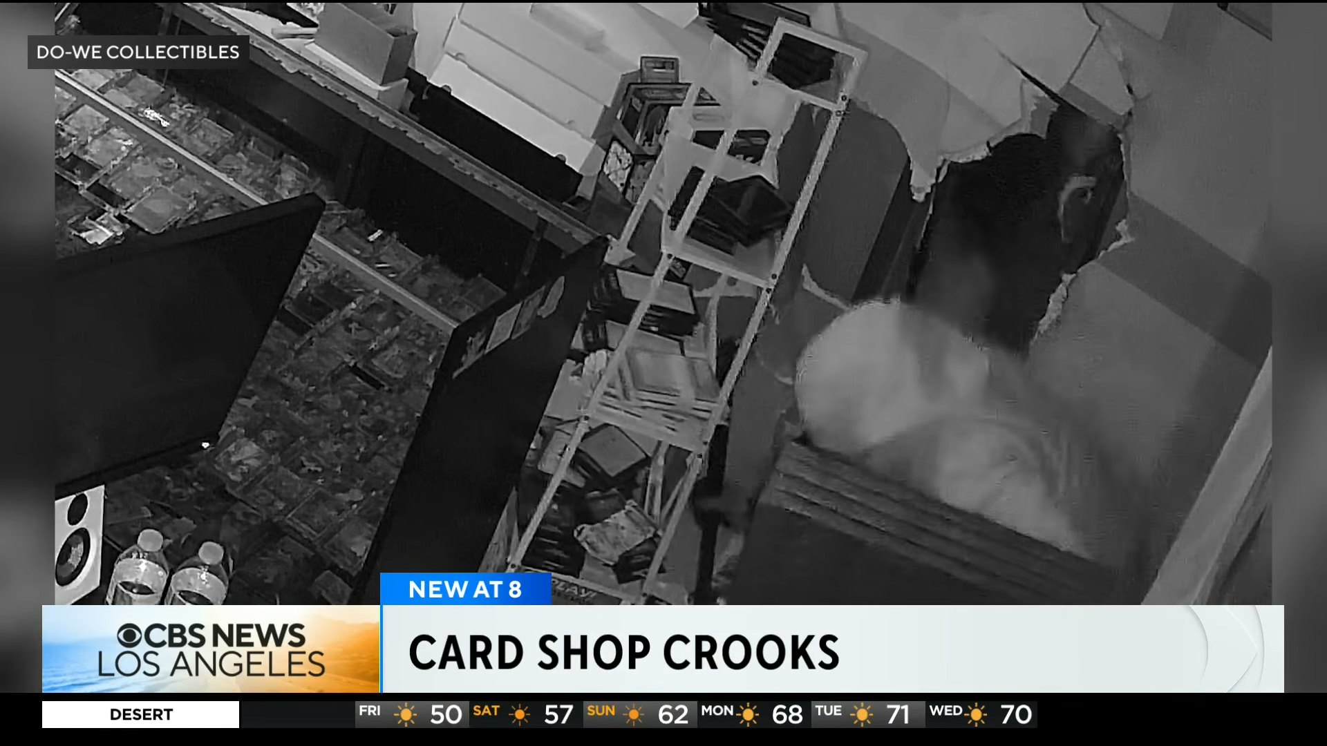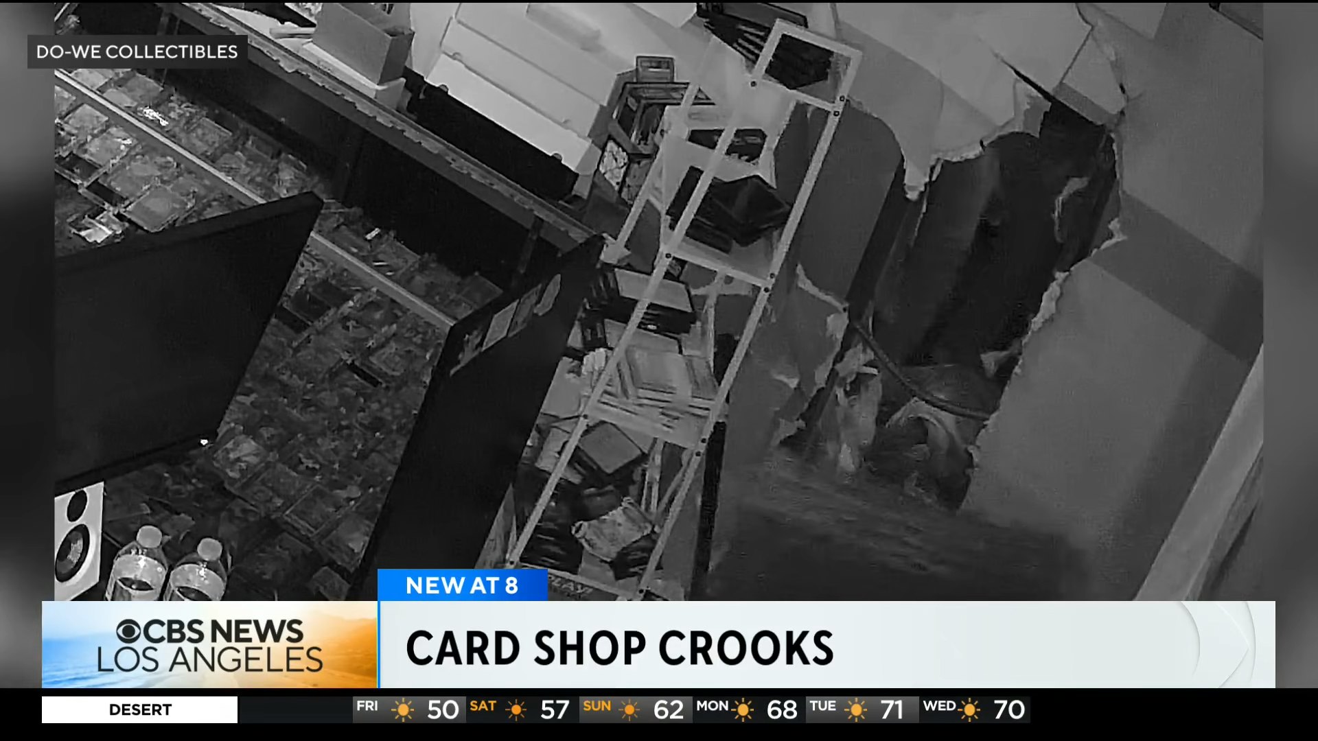 《纽约(专题)邮报》报道,事件发生于18日凌晨3时左右,4名疑犯闯入一家名为“Do-We Collectibles”商店,疑犯先砸破隔壁保险公司玻璃门,再打穿与店面相连的墙壁,潜入店内。