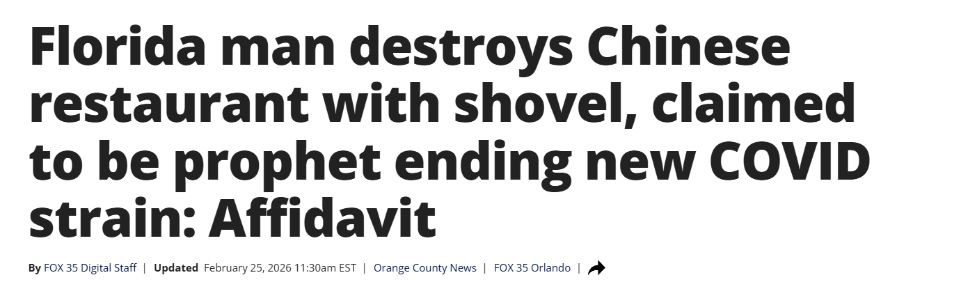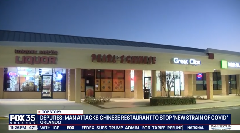 佛罗里达州奥兰多一名男子闯入当地一家中餐馆,手持铁锹砸毁厨房设备,并袭击餐馆老板,声称此举是为了“阻止中餐馆释放新的新冠病毒变种”。