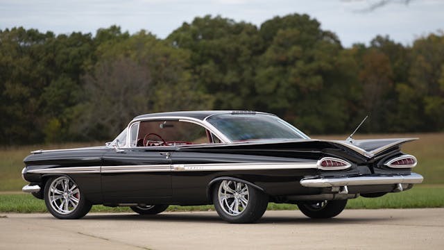 50年代的美国汽车大气到夸张。银光闪闪的镀铬件代表着满不在乎的奢华,流线型的外形充满科技感,包围式前后风挡和无框车门提供无与伦比的通透,高耸飞扬的“鱼尾巴”象征着飞行和速度,大而无当的前格栅则暗示着大排量发动机的豪迈和力量。