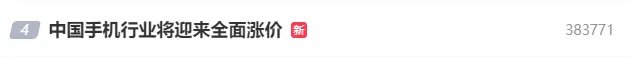 26日,“中国手机行业将迎来全面涨价”相关话题登上微博热搜榜,引发网友广泛关注。