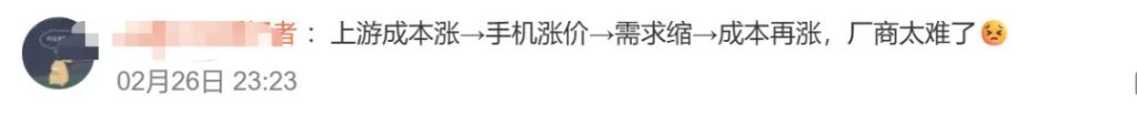 同时,OPPO、一加、vivo、iQOO、小米、荣耀等主流品牌或将陆续上调老款机型售价。市场研究机构Counterpoint Research预计,3月后中国市场新品手机均价将较2025年同档位机型上涨15%—25%。