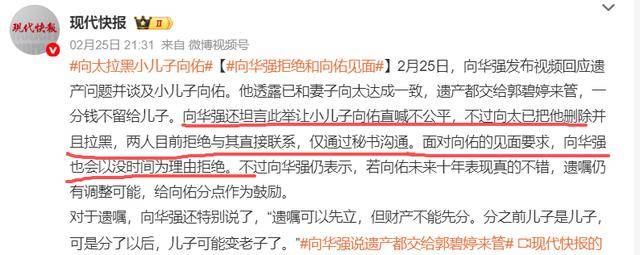 2月25日,向华强特意发视频,公开了自己和向太的遗产分配细节,消息一出直接冲上热搜。