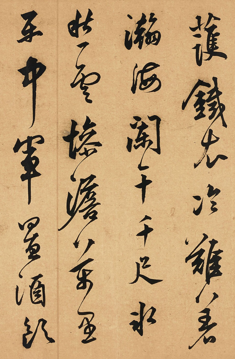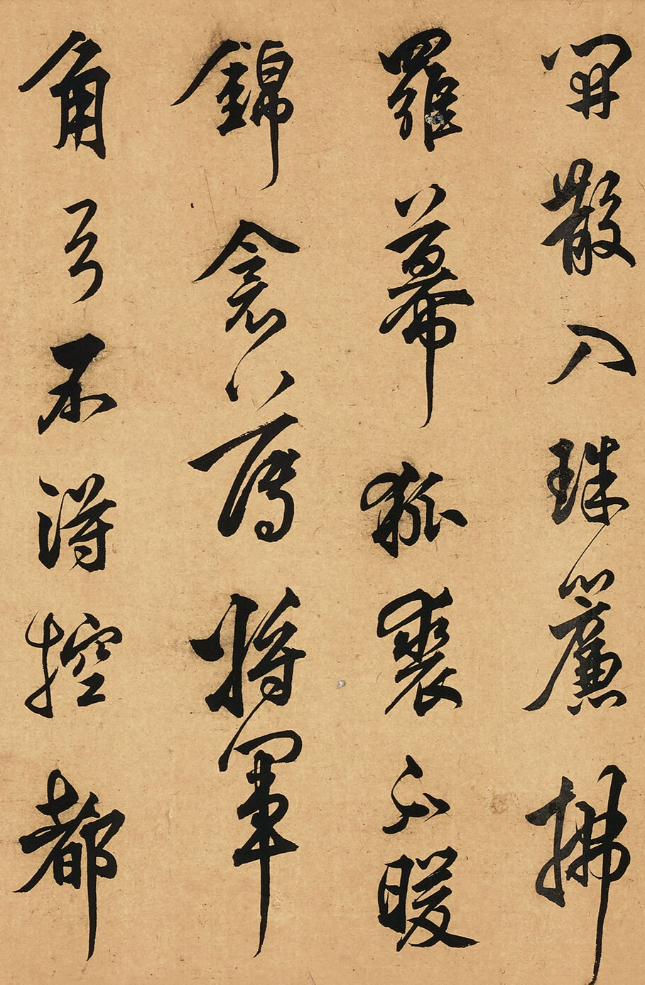 送别的时候,“轮台东门送君去,去时雪满天山路”,友人要走,雪又下得那么大,路都看不清了。可“山回路转不见君,雪上空留马行处”,友人走了,只留下马蹄印,这离别的不舍,全在这雪里了。莫是龙用行草写这诗,那笔画跟雪一样,飘逸又带劲,把边塞的雪景和送别的情谊,全写活了!