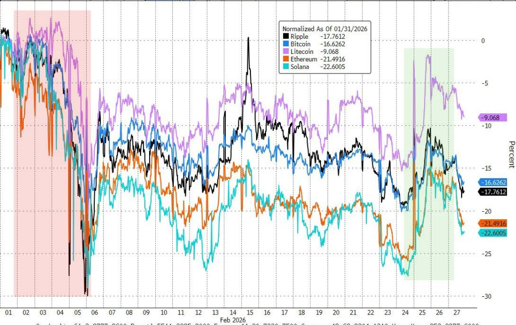 在普遍的避险情绪中,加密货币市场遭遇抛售。比特币价格下跌3%。以太坊更是下挫超5%,跌破2000美元关口。整个2月份,比特币连续第五个月下跌。