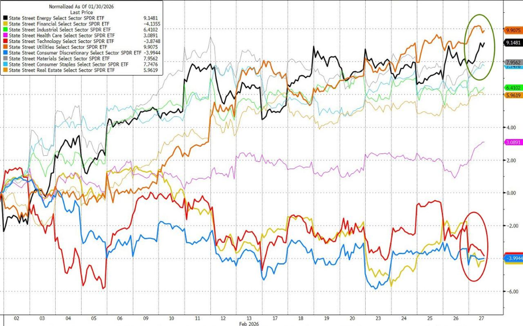 软件股周五再度下挫,北美科技软件股指数ETF跌1.25%,同时连续第二个月表现糟糕。本月科技、金融和可选消费板块表现最差,而公用事业、能源和材料板块则表现优异。