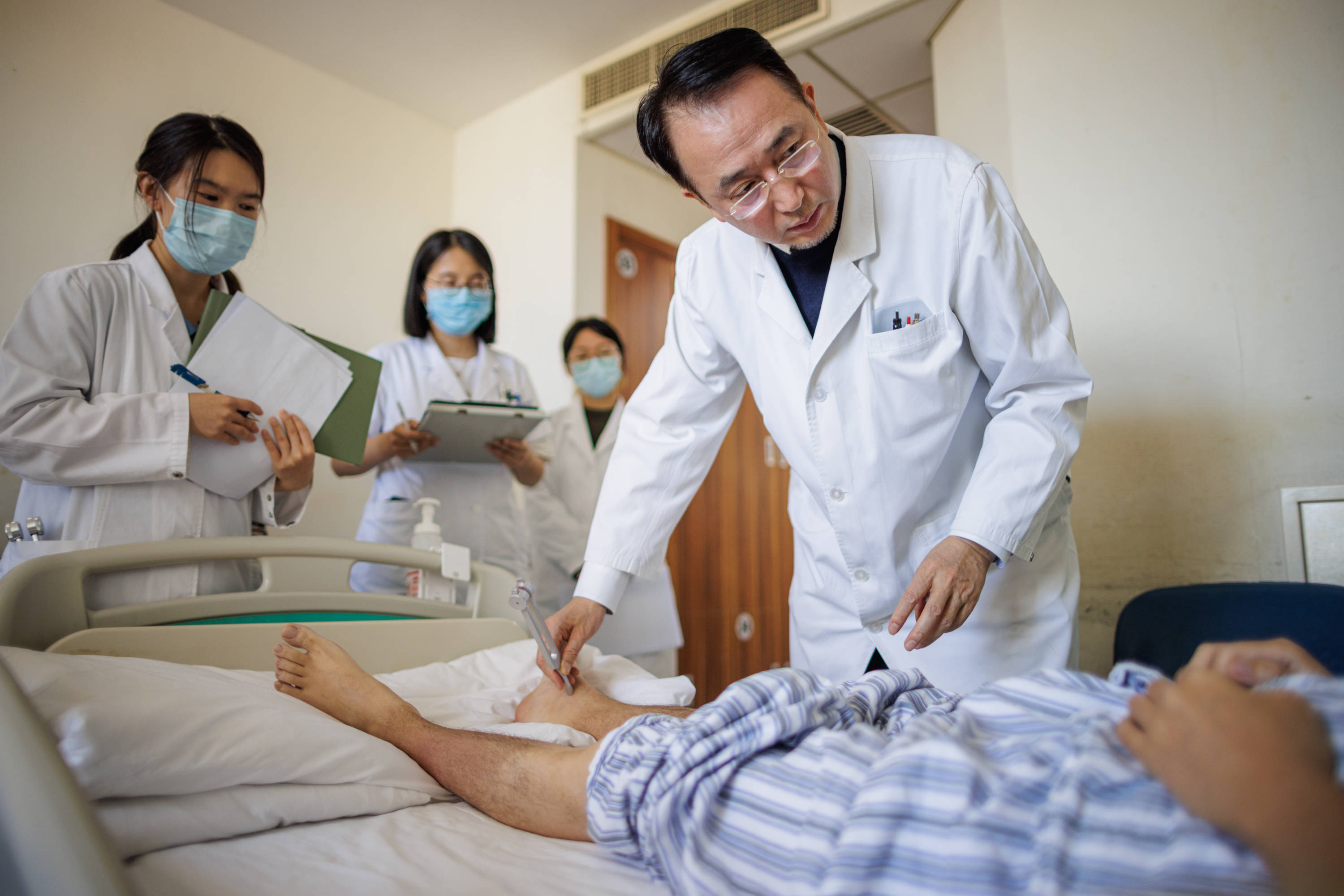 2025年11月,北医三院神经内科主任樊东升为患者检查身体。新京报记者 王子诚 摄