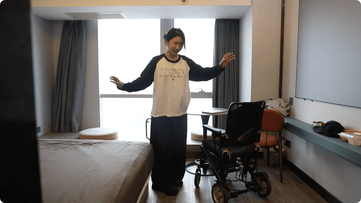 2021年5月确诊后,小刘曾短暂回到南京工作了一段时间。起初生活还能继续,只是有些跛行,仔细看才能注意到左脚微微拖地。但后来她逐渐控制不住双腿,有时在办公室摔倒,有时在过马路时跌倒。
