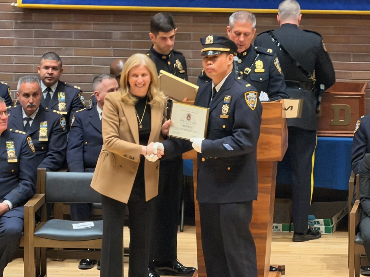 纽约市警察局27日在总局举行年度升职典礼,逾200名警员换上新肩章。局长蒂池(Jessica Tisch)逐一颁授警官、警佐等多个层级的晋升证书。在晋升名单中,华裔警员伍虎林(Philipp Wu)荣升警官(Captain),亲友到场见证,成为当日焦点之一。