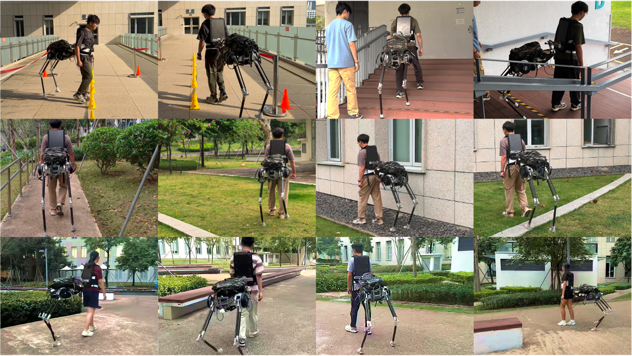 未来,该机器人有望在应急救援与物资转运、野外巡检与勘探、复杂地形后勤保障等方面进行应用。该机器人将人类在非结构化环境中的适应性与决策优势,与腿足机器人在承载与地面交互方面的能力有机结合,为面向挑战环境的负重行走辅助提供了全新思路。