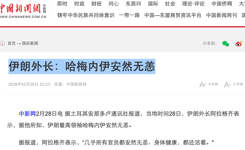 中共党媒称哈梅内伊“几分钟后露面”遭打脸